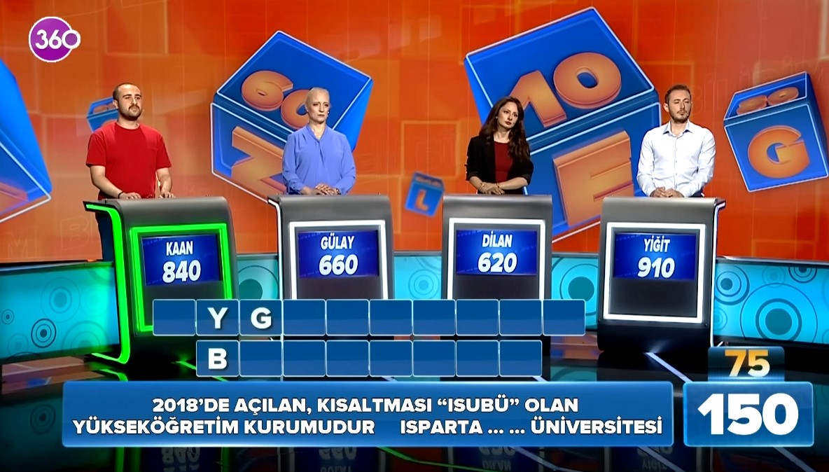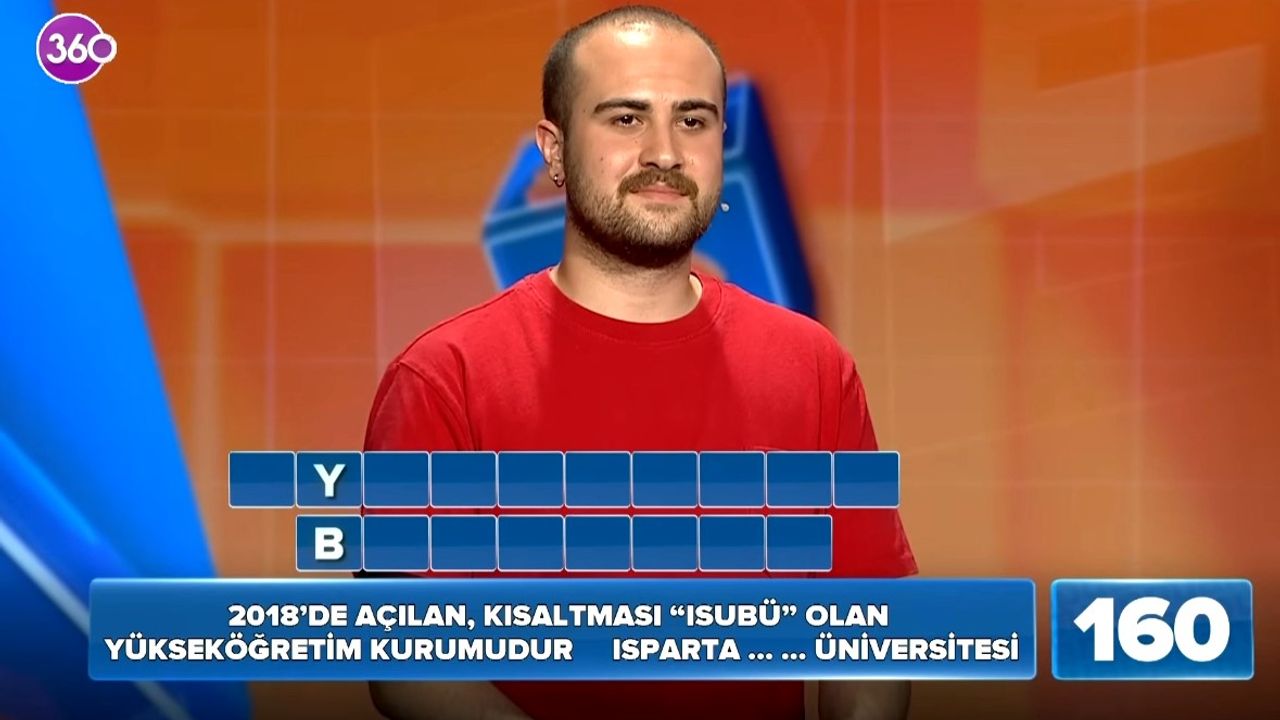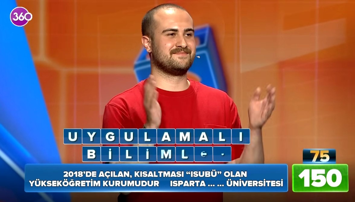 Soruda, “2018’de kurulan, kısaltması ‘ISUBÜ’ olan yükseköğrenim kurumudur. Isparta ………… Üniversitesi” ifadesi yer aldı. Yarışmacı Kaan Beneklioğlu, soruya doğru yanıt vererek “Uygulamalı Bilimler” cevabını söyledi. Yarışmacı doğru cevabı verdikten sonra artı puan kazandı.