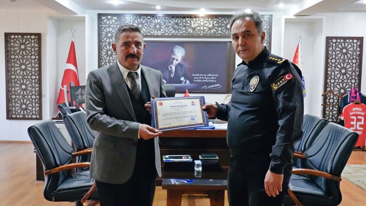 Isparta İl Emniyet Müdürü Erdem Bildirici, müdürlük kadrosunda görev alan polis memuru Abdulhalim Börek’e onur belgesi ve hizmet anısı plaketi takdim etti.