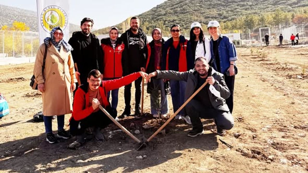 Milli Ağaçlandırma Günü kapsamında gerçekleştirilen etkinlikte, katılımcılar fidan dikiminin ardından doğanın korunmasına dikkat çekti.