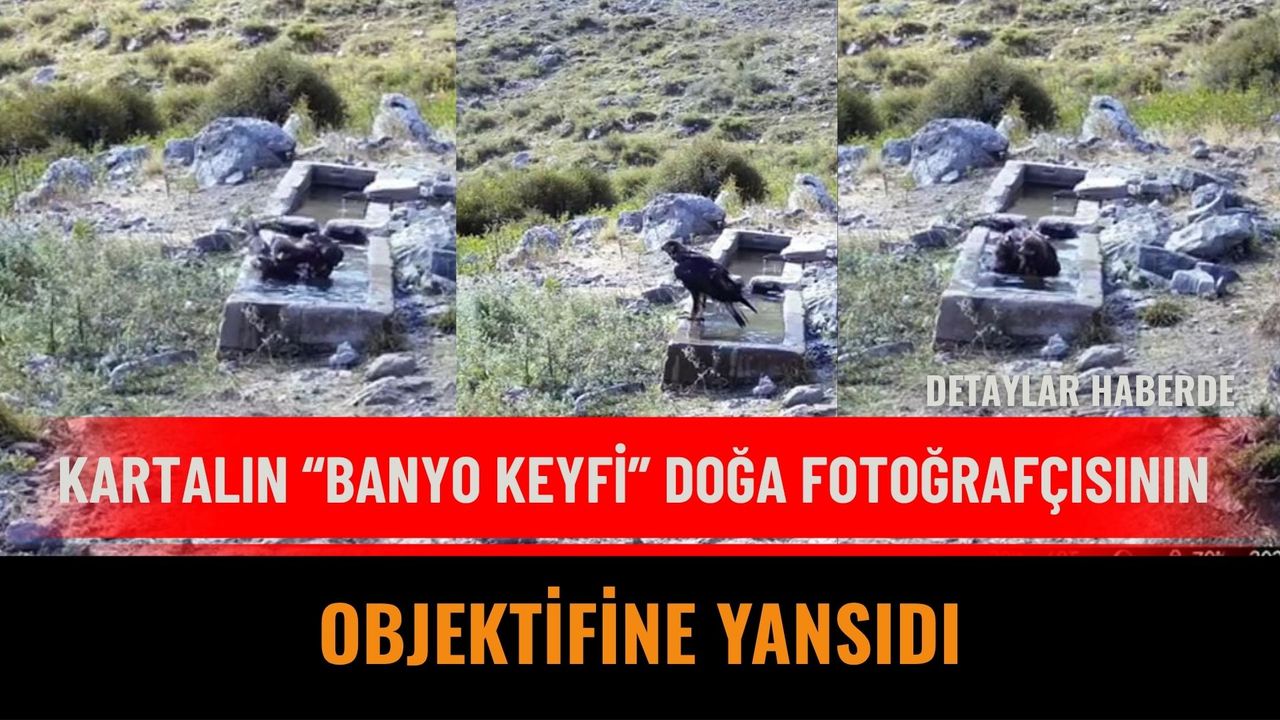 Kartalın kısa süreli banyo keyfi sosyal medyada paylaşılmasının ardından büyük ilgi gördü