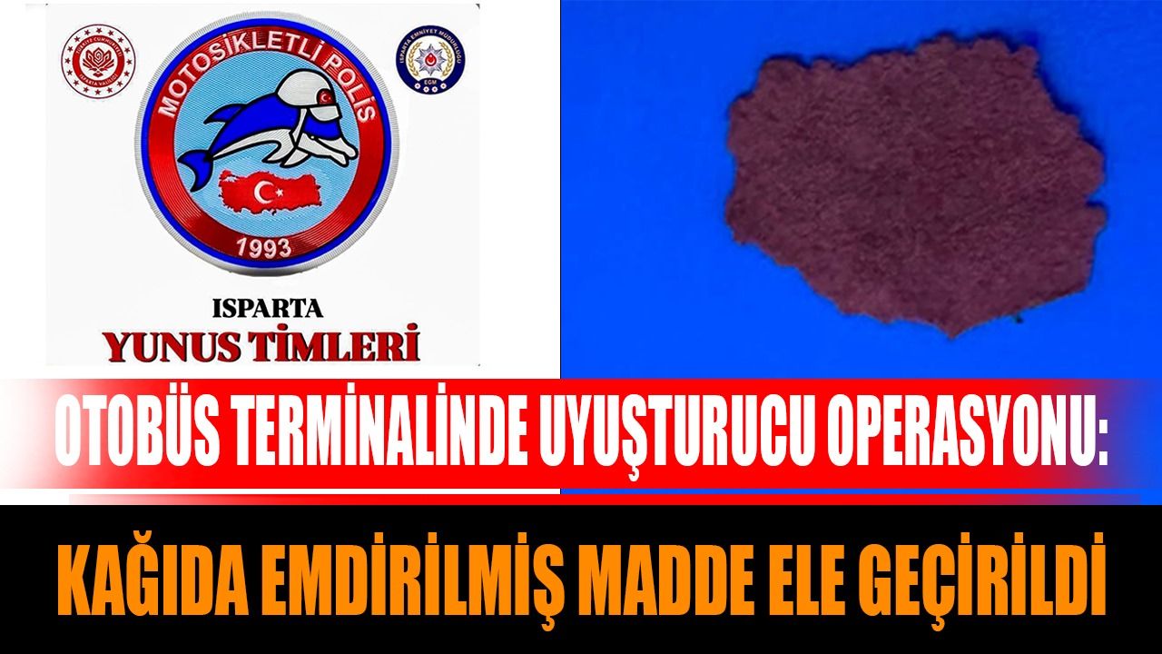 Isparta İl Emniyet Müdürlüğünce Çünür Mahallesi Şehirlerarası Otobüs Terminali içerisinde denetim gerçekleştirildi. Isparta İl Emniyet Müdürlüğü, Yunus Timlerince, Çünür Mahallesi Şehirlerarası Otobüs Terminali içerisinde denetim gerçekleştirildi. Edinilen bilgiye göre Yunus timlerince , Kağıda emdirilmiş sentetik kannabinoid narkotik maddesi ele geçirildi. Şüpheli şahısla ilgili adli işlem başlatıldı. İl Emnniyet Müdürlüğü konuya ilişkin yaptığı açıklamada: “Şehrimizin huzuru ve güvenliği için çalışmalarımız aralıksız devam edecektir. Şüpheli bir durum gördüğünüzde, 112 Acil Çağrı Merkezi veya UYUMA uygulaması üzerinden ihbarlarınızı iletebilirsiniz. Narvas Projesi ile ihbarlarınız titizlikle değerlendirilecektir.” İfadelerine yer verildi.